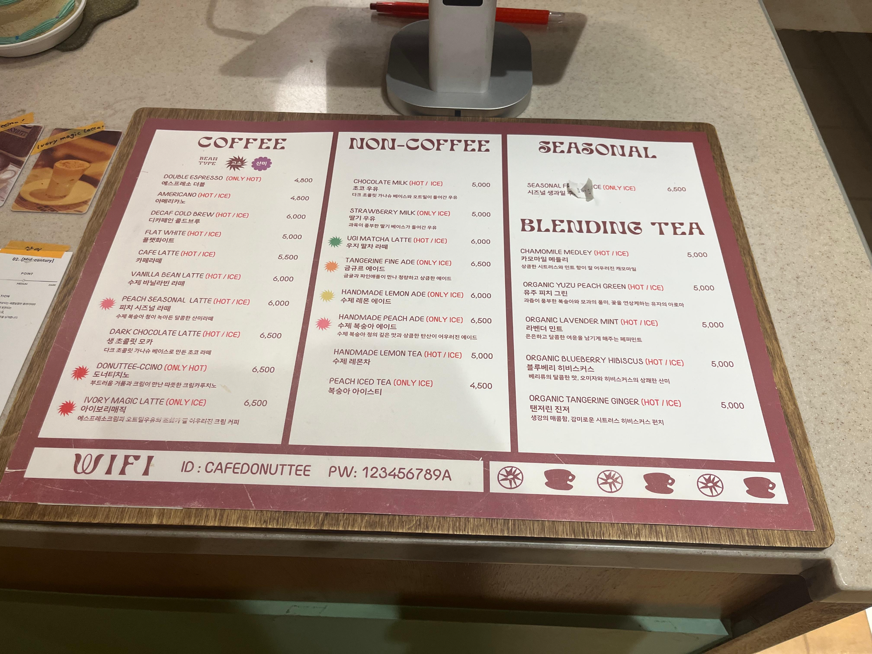 💰 가격대(원): 음료(4,500-6,500), 도넛(2,800-3,800)