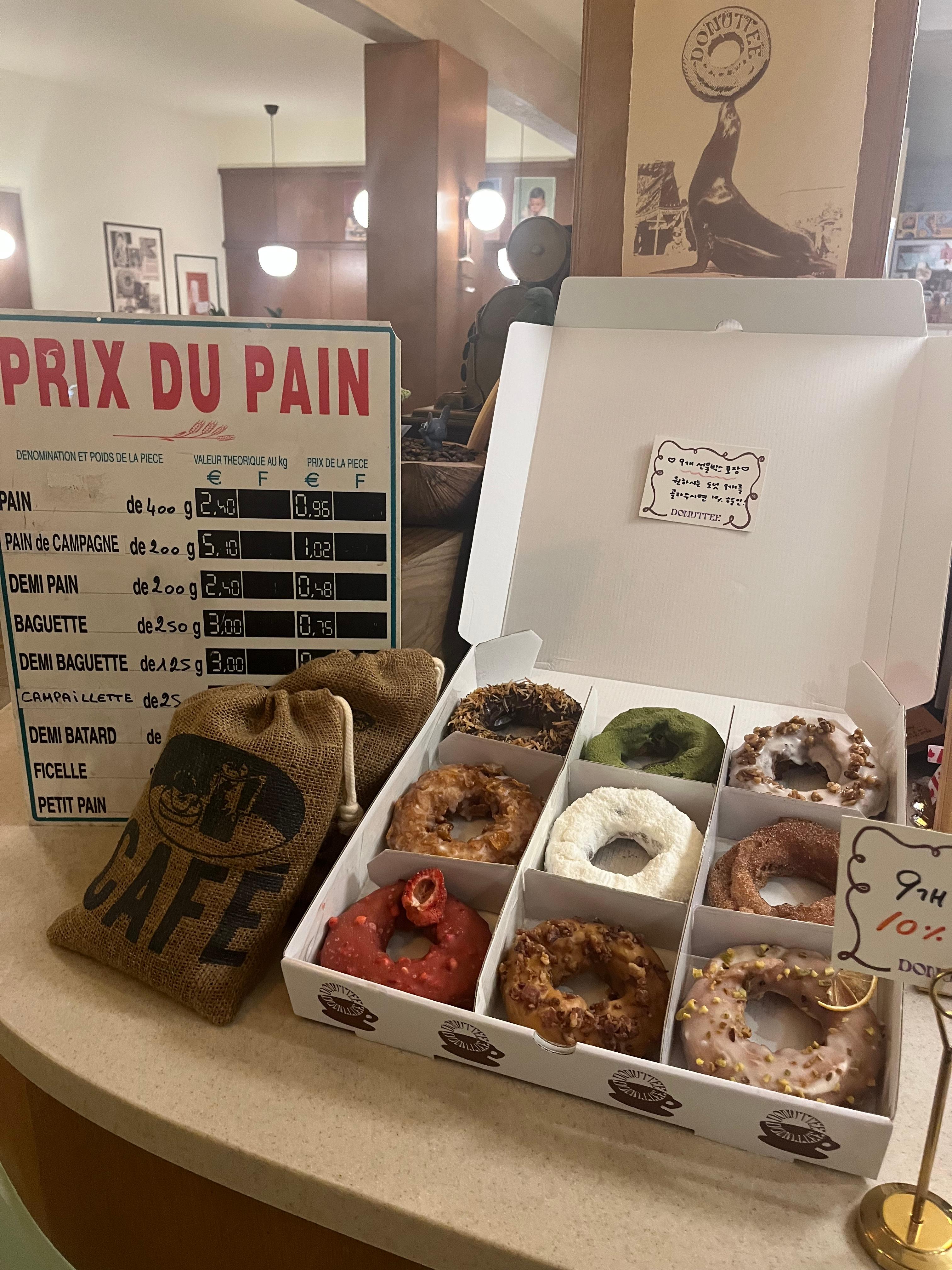 우드톤 인테리어에 미국 도넛집 느낌이 나게 소품이나 포스터를 예쁘게 꾸며둬서 사진 찍기 좋고 미국 분위기를 느끼기좋은 감성 카페였어요. 📸